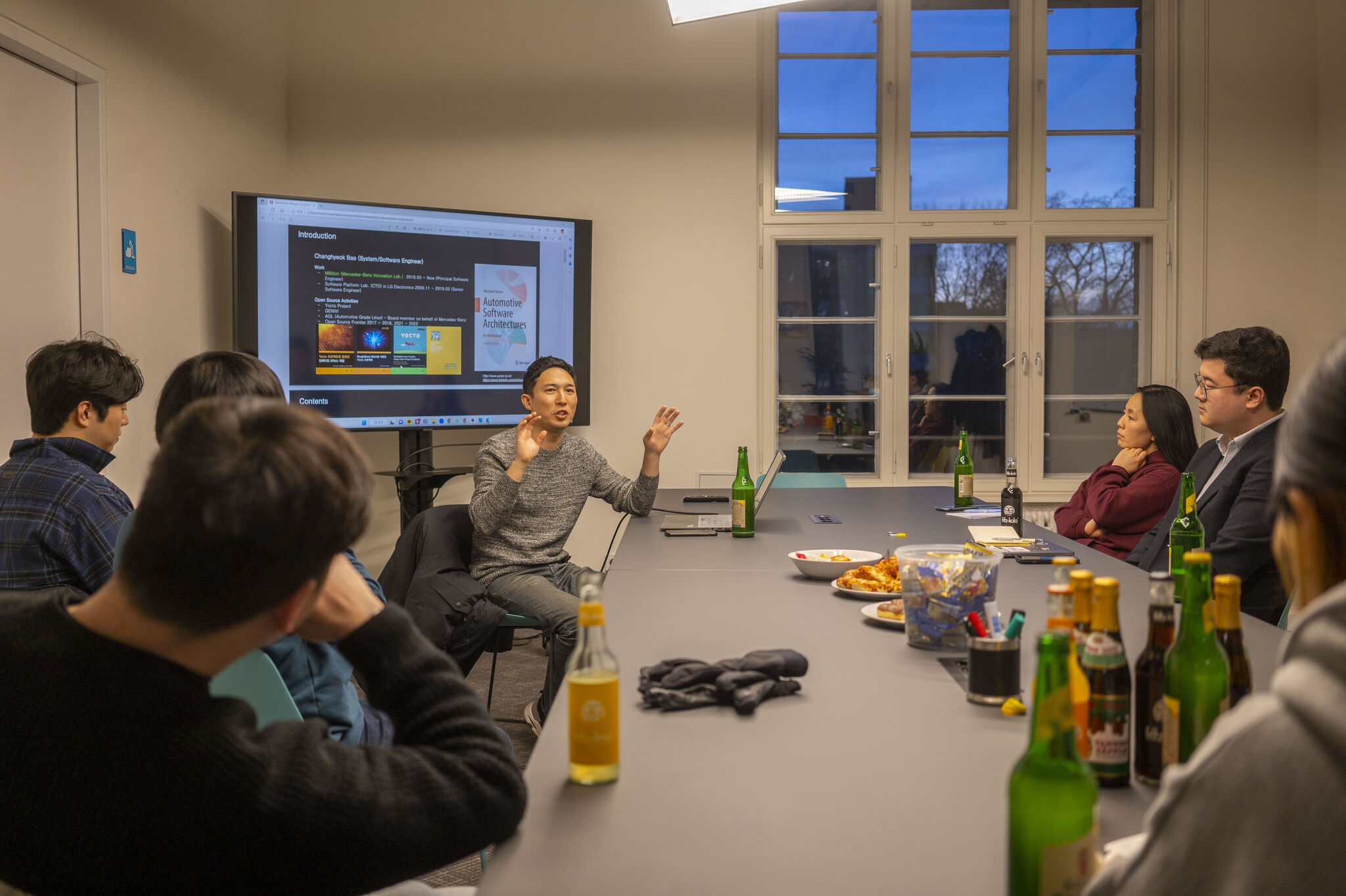독일 베를린에서 한국분들끼리 자동차 산업과 소프트웨어 이야기를 하니 신기하고 재미있었다. 이 모임 외에도 벤츠 독일에서 일하는 한국분들의 모임이 본사에 계신분 주관으로 있고 필자 회사에서도 9명의 한국분들이 일하고 있어 가끔 회사욕도 하고 정보도 공유하며 지내고 있다.