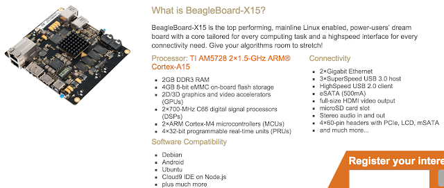 단점: 외부 인터페이스가 많지 않음 - Beaglebone은 여러 GPIO를 사용하여 다양한 액세서리 디바이스를 제어할 수 있고, 모든 HW에 관련된 문서가 공개되어 있다. 기존에 Raspberry Pi보다 장점은 하드웨어 스펙에 있었지만, Raspberry Pi2가 나온 지금 시점에서는 아니다. 아직 공식적으로 출시되지 않은 Beaglebone-X15은 기존 Beaglebone 성능을 능가하고, Multimedia HW 가속 또한 지원한다.