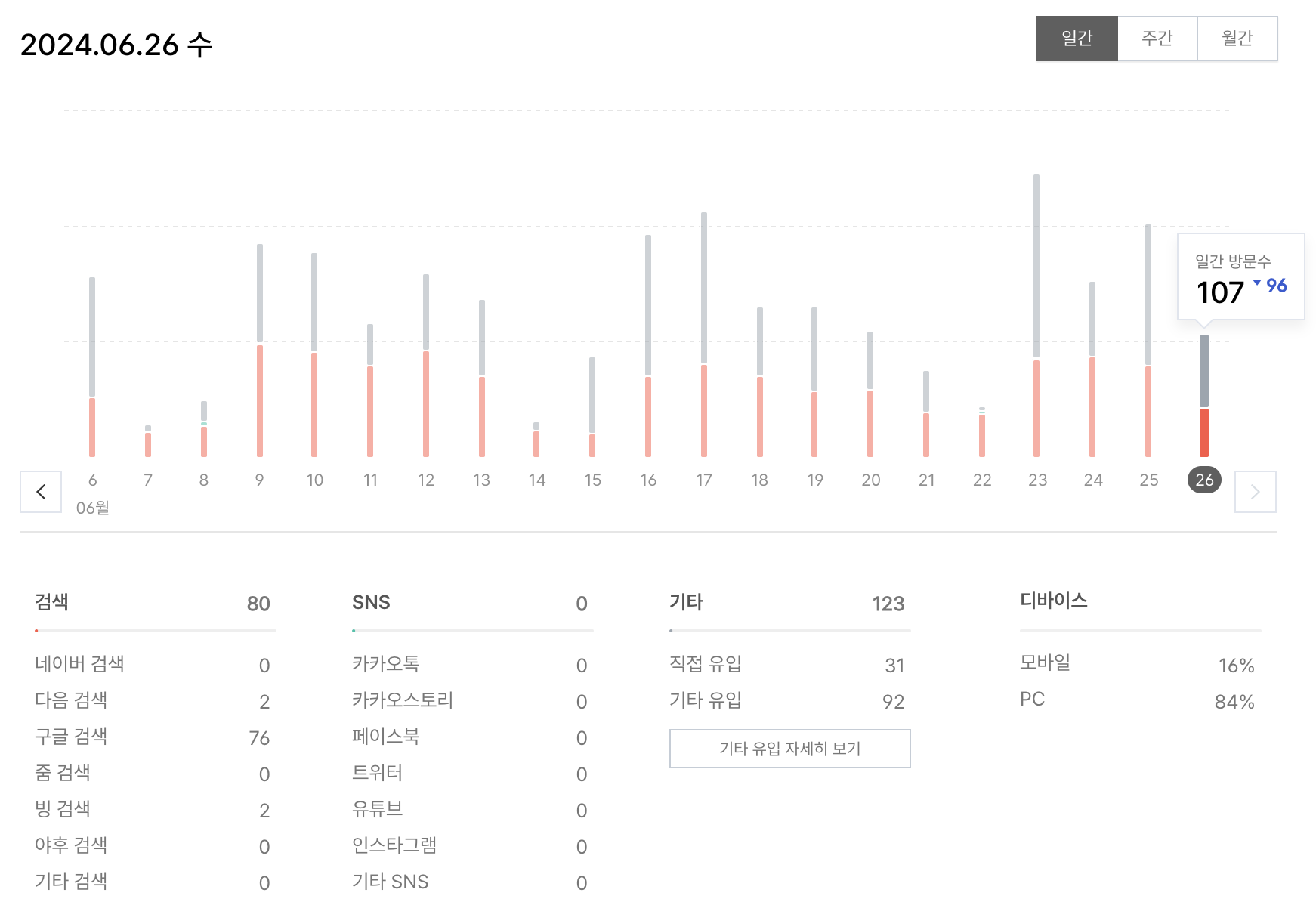 블로그 방문 통계에서 유입 경로를 갑자기 유심히 살펴보고 싶어졌다. 평균적으로 100 ~ 200 사이의 방문자가 있었는데 국내에서 제일 많이 사용하는 네이버 검색이 죄다 0이여서 약간 이상했다. 알고보니 티스토리는 카카오에서 제공하는 것이고 네이버 검색에 노출이 되려면 네이버 서치어드바이저에 등록을 해야한다는 것을 알았다.