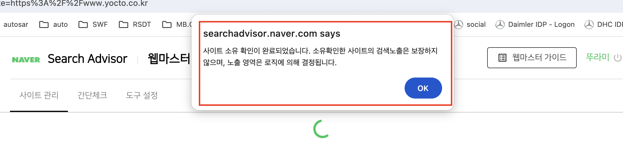 7. 다시 네이버 서츠어드바이저 페이지로 들어와서 소유확인 버튼을 클릭한다.