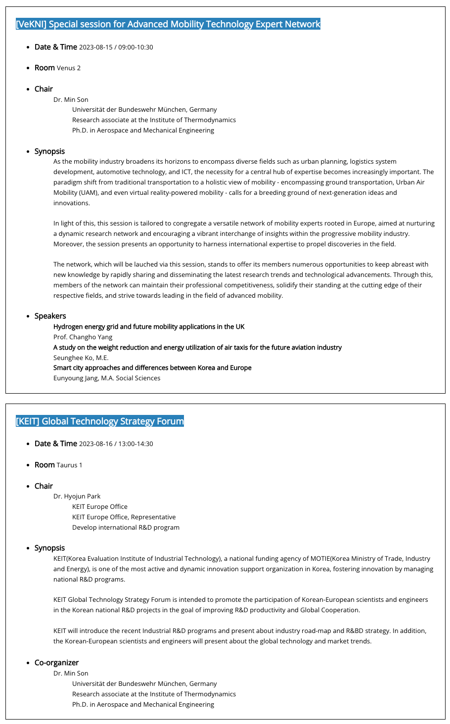 주로 정보통신 및 AI, 모빌리티 관련 세션에 참석하여 세션을 발표하고 들었다.
