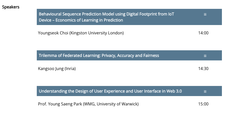 또한 웹 3.0 및 AI 관련 세션의 내용도 재미있는 주제들이 있었다. 다 캡쳐하면 너무 길어져 제목들만 캡쳐한다.