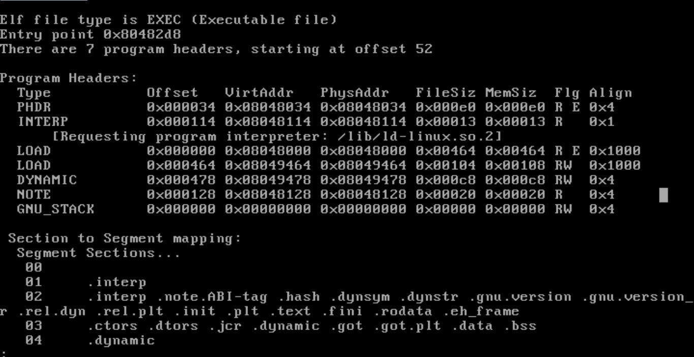 위의 그림 처럼 readelf -l [ELF binary] 명령을 보면 type 부분에 LOAD라고 적혀 있는 곳이 메모리에 로드될 segment(시스템 로더 프로그램을 보는 단위)이다.