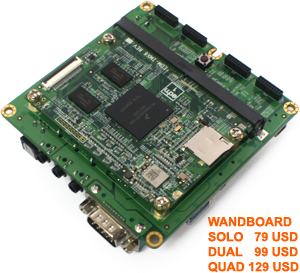 - Wandboard: http://www.wandboard.org/ https://github.com/Freescale에서 meta-fsl-arm과 meta-fsl-arm-extra를 받아 사용하면 되고, 가장 유지보수가 잘되고 있는 것 중에 하나이다. Yocto와 호환되며 Freescale i.MX6 Solo, Dual, Quad 3가지 종류가 있으며 ARM Cortex-A9를 지원한다. 앞의 글들에서 소개한 도서에서는 Wandboard를 가지고 설명하고 있다.