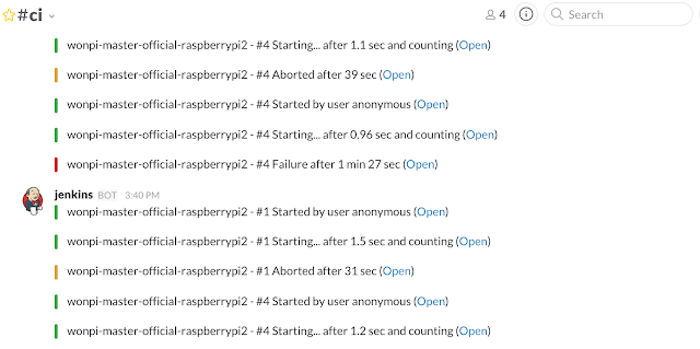 - Post-build Actions에 Slack Notifications 추가 위의 과정을 거치면 Slack으로 Jenkins에서 Job이 돌아간 결과를 알 수 있다. Slack는 IOS/Android App도 있어, 언제 어디서든 할 수 있어 Jenkins와 연동하면 유용하게 사용할 수 있다.
