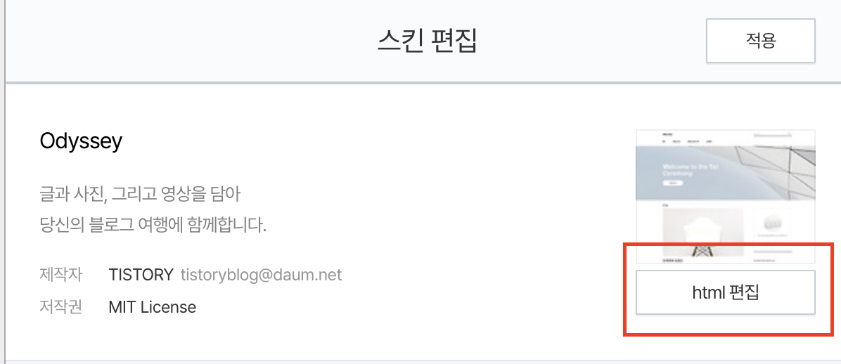 5. 스킨 편집에서 html 편집 버튼을 누른다.