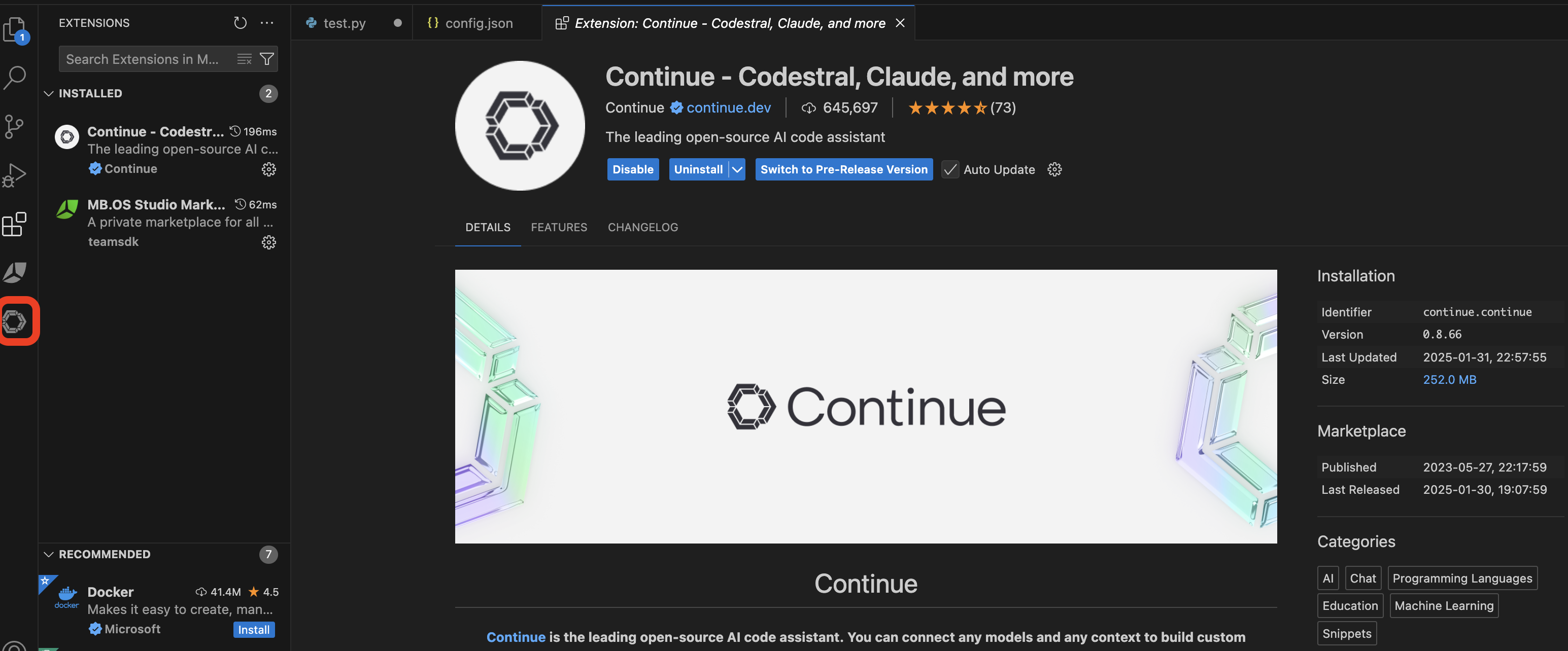 Visual Studio Code (VS Code)에서 DeepSeek (딥시크)를 사용하는 방법을 간단히 이야기해보려고 한다. VS Code Extension 설치해서 간단한 Configuration을 하면 쉽게 사용이 가능하다. 여기서 사용할 Extension은 Continue 이고 간단한 설치와 설정으로 DeepSeek를 사용할 수 있게 해준다. 이 Extension을 선택한 이유는 이전의 블로그 글에서 이야기한 local PC에서 쉽게 돌릴 수 있는 서비스인 ollama 를 지원하고 많은 개발자들이 사용, 업데이트도 잘되기 때문이다. Extension 설치 우선 VS Code를 실행하고 Extensions에서 Continue를 검색한 후 Install 버튼을 눌러 설치한다. 설치가 완료되면 위의 ..