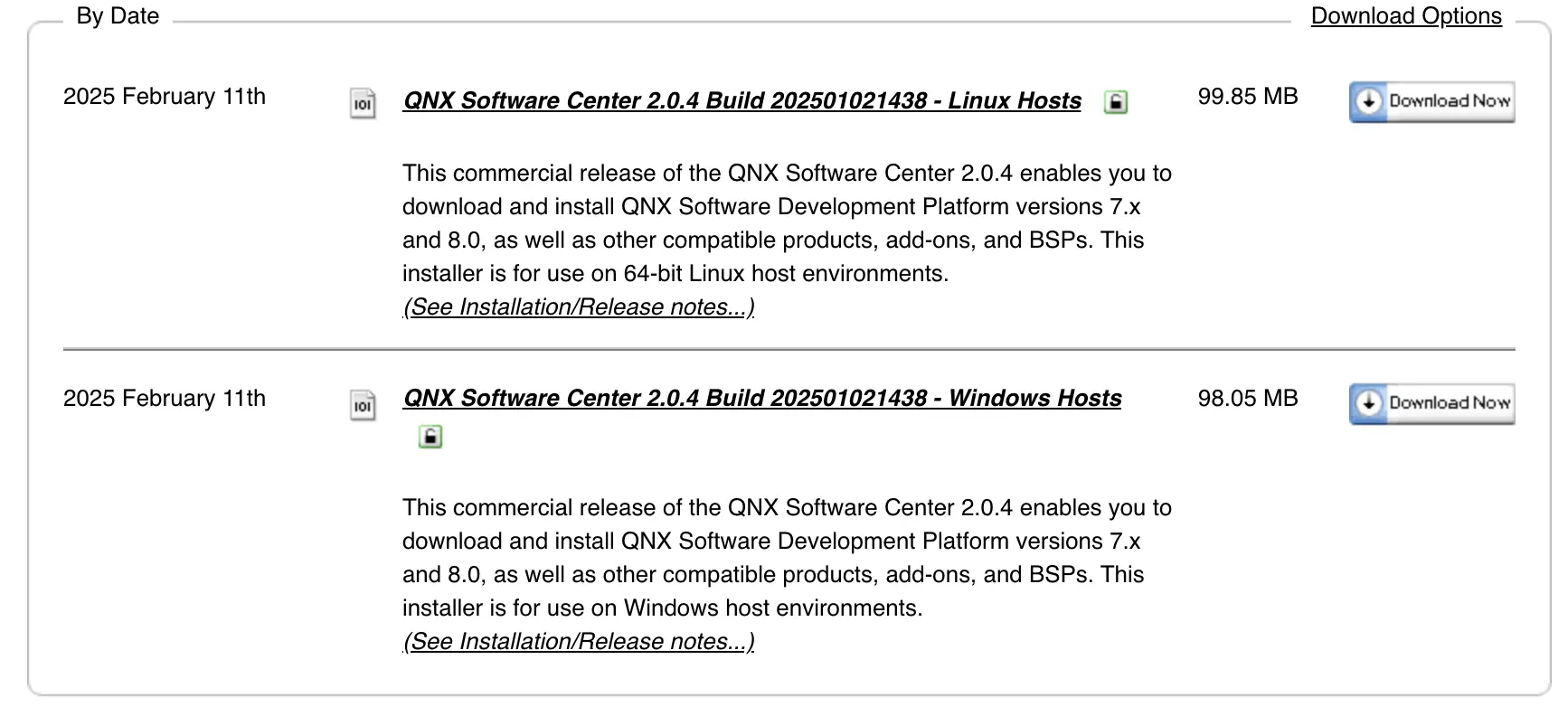이전 블로그 글에서 QNX SDP 8.0을 무료 라이선스를 받는 방법에 대해서 알아보았다. 이번 글에서는 QNX SDP 8.0 라즈베라파이 용 OS (운영체제)를 받아서 실행해보도록 한다. 아래 순서대로 하면 방법은 정말 간단하다. QNX Software Center 다운로드 QNX SDP (Software Development Platform) 을 받기 위해서는 QNX Software Center 를 우선 다운로드 받고 그 안에서 SDP 및 필요한 BSP, Tool 등을 모두 받을 수 있다. QNX Software Center를 받기 위해서는 https://www.qnx.com/download/group.html?programid=29178 로 들어가서 아래 화면과 같이 Windows Host 또는 L..